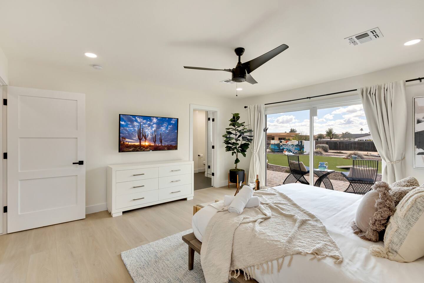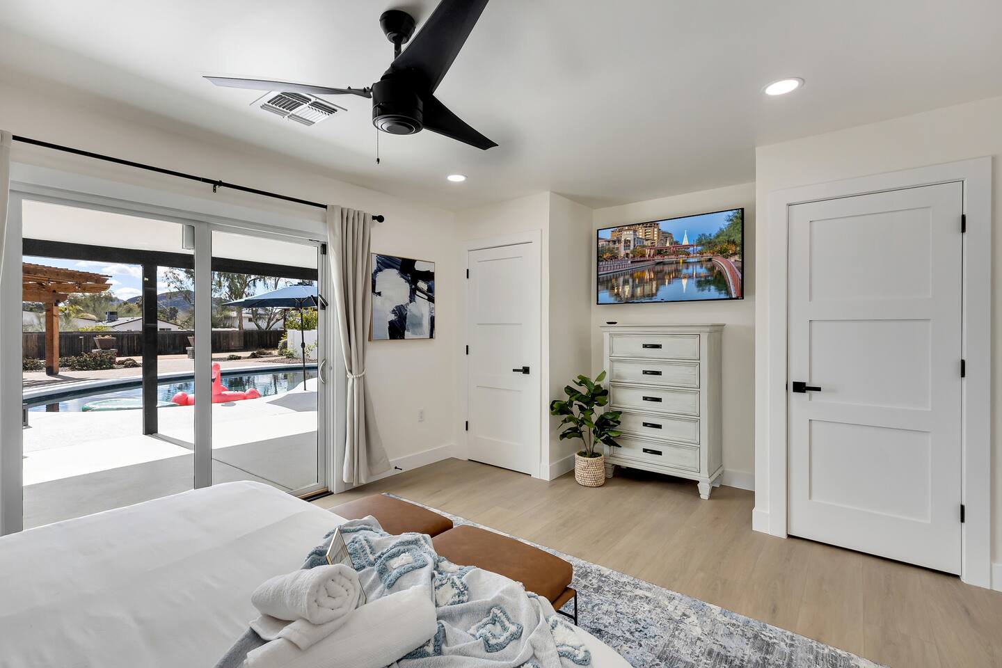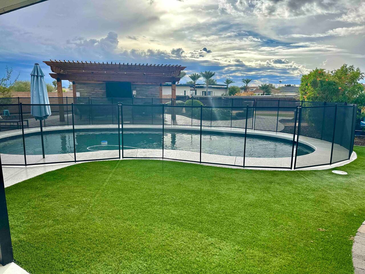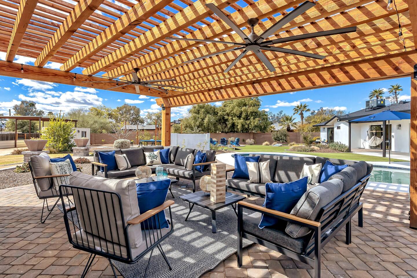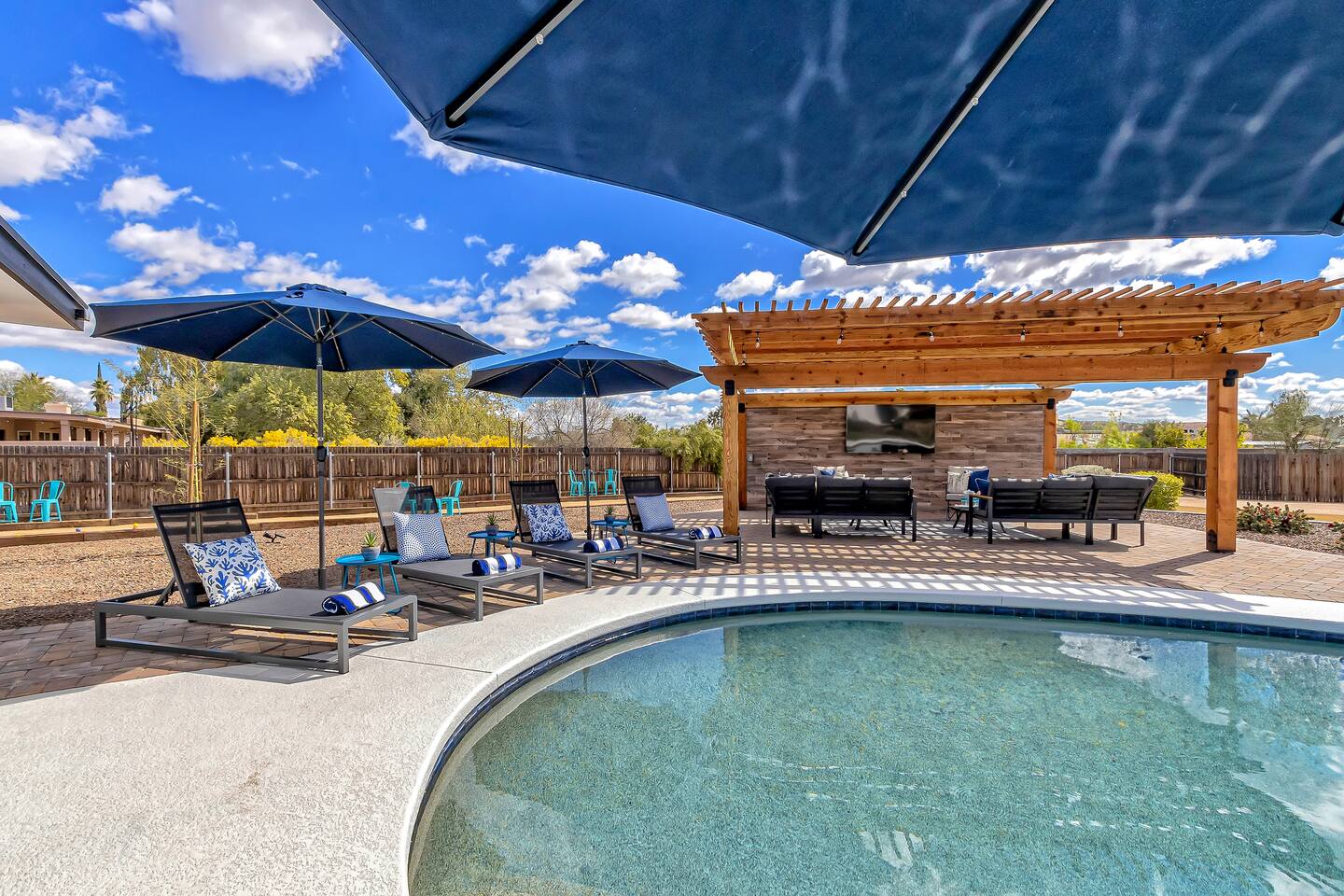 Sanctuary on Shea is a family friendly oasis located in Scottsdale. The property is geared towards allowing the whole family to enjoy all the sunshine Arizona has to offer! All game accessories are included with the property to enjoy * Private Pool - Child safety fence available for install upon request * Heated Pool - Available at $100/night * Hot tub * Pickleball court * Basketball court * Outdoor Ping Pong * Bocce Ball Court * Corn Hole *Horseshoe Toss * Yard Dice * Poolside Grill * Gas Firepit * Games The home is immaculately cleaned and includes all of the essentials to allow for a comfortable and enjoyable stay! Including but not limited to the items below: o Poolside Gas Grill o Cornhole Boards/Bags o All games accessories are provided o Outdoor patio table o Outdoor play area o Toaster o Drip Coffee Maker - filters and starter packs of coffee & creamer are provided o Microwave o Blender o Cooking Essentials o Pots & Pans o Silverware o Plates, Bowls, Glasses etc. o Washer/Dryer o Detergent o Board Games o Iron o Hangers o Hair Dryer o Shampoo, Conditioner and Body Wash o Bed Linens o Extra pillows and Blankets o Family owned - nearby for immediate assistance if needed Primary 1 - King size bed Primary 2 - King size bed Bedroom 3 - King size bed Bedroom 4- King size bed Bedroom 5- Two full bunk beds *All bedrooms have an ensuite bathroom* PLEASE NOTE: Pool Heating is available for $100 per night of your reservation. The pool will be heated and ready to enjoy at our time of check in time Child safety pool fence available for installation during your stay. Minimum 7 day advance notice is needed prior to your check in date House is monitored with exterior cameras for guest safety and security Please contact Heather, our property manager at Arizona RnR Vacation Rentals, for any additional questions